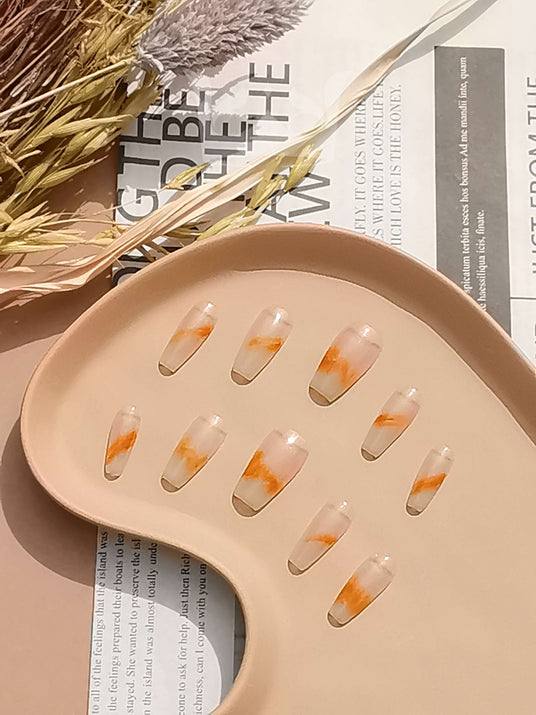 This clear French tip coffin long press-on nail set is perfect for consumers embracing the transparent nail trend. It offers a modern twist on the classic French manicure with its clear design and delicate embellishments. This set is ideal for those who want to try the clear tips trend mentioned in the article while still maintaining an elegant and sophisticated look. It's versatile enough for both everyday wear and special occasions, catering to consumers who value adaptability in their nail style.