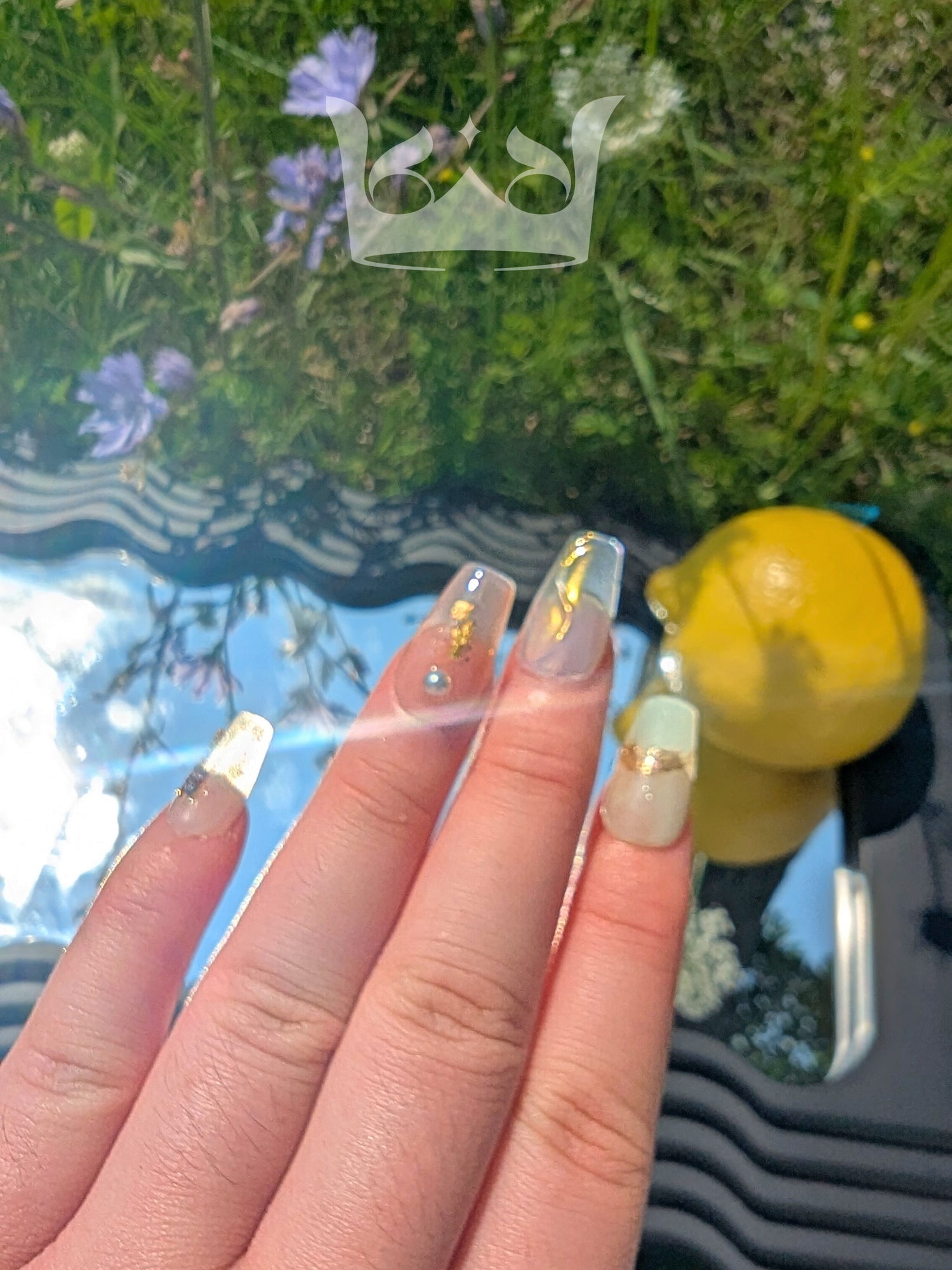 Si bien las uñas a presión generalmente son resistentes al agua, la exposición excesiva al agua puede debilitar el adhesivo. Use guantes protectores cuando lave los platos o realice actividades que impliquen una exposición prolongada al agua.