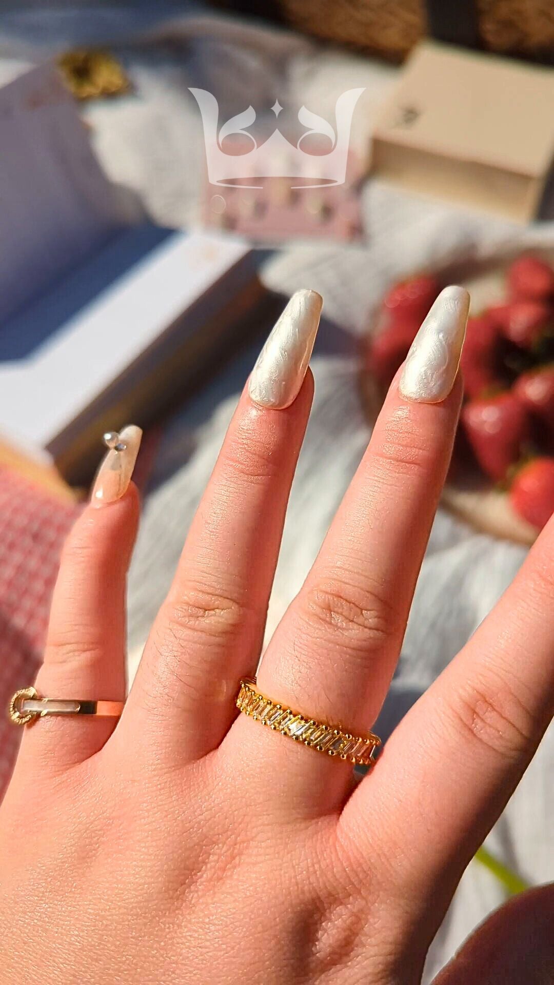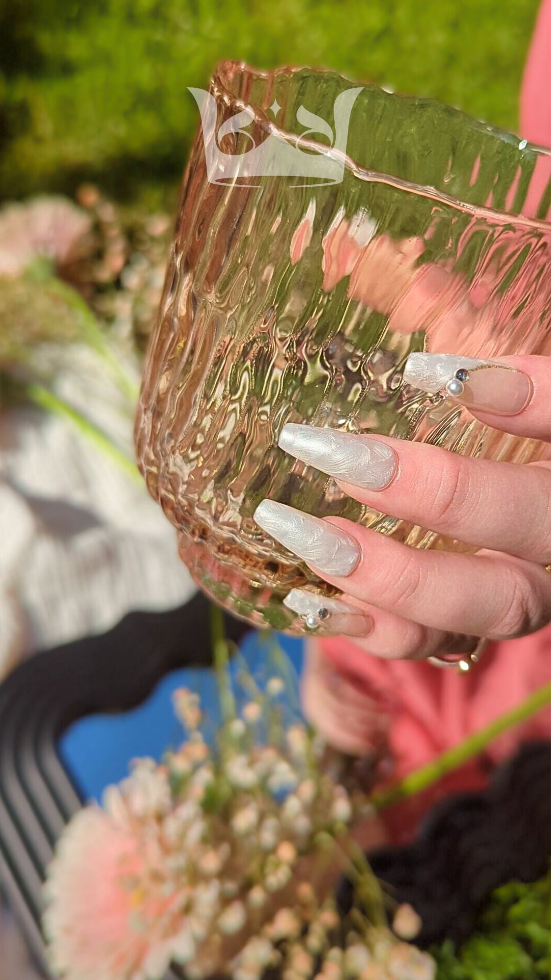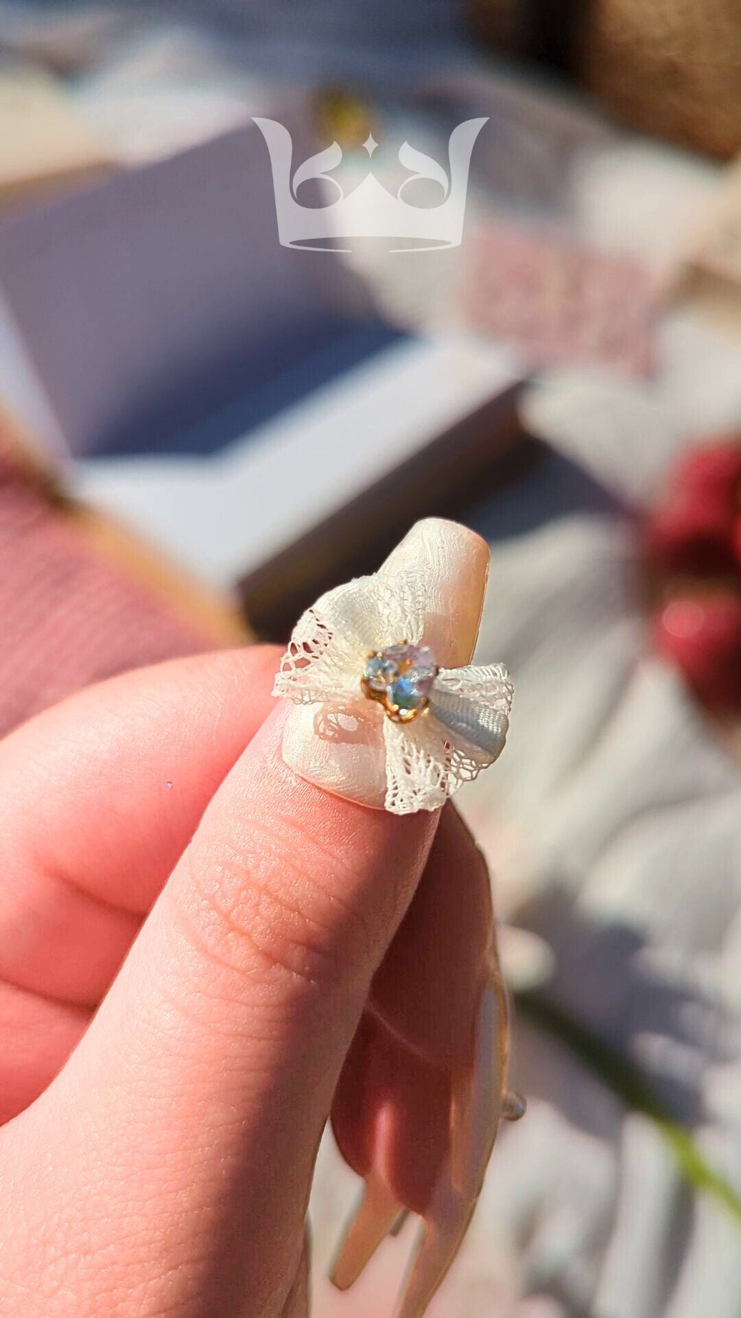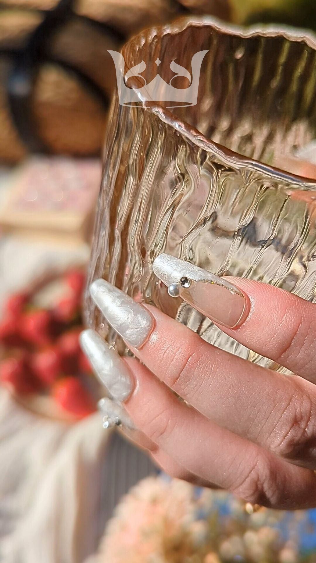 Usando Pearlescent Perfection el día de tu boda, captura el espíritu de la belleza clásica. Los diamantes aurora brillan fascinantemente en estas uñas a presión del tamaño de un ataúd, que son una tranquila combinación de blanco y nude. Un pequeño diseño de lazo añade un toque de elegancia. Eleva tu look nupcial con una combinación perfecta de romance y sofisticación, haciendo de Pearlescent Perfection la joya brillante a tu alcance. Con estas uñas, donde el encanto de las perlas, los diamantes y un pequeño lazo se unen para crear un momento absolutamente ideal en tu gran día, podrás hacer que cada gesto sea inolvidable.