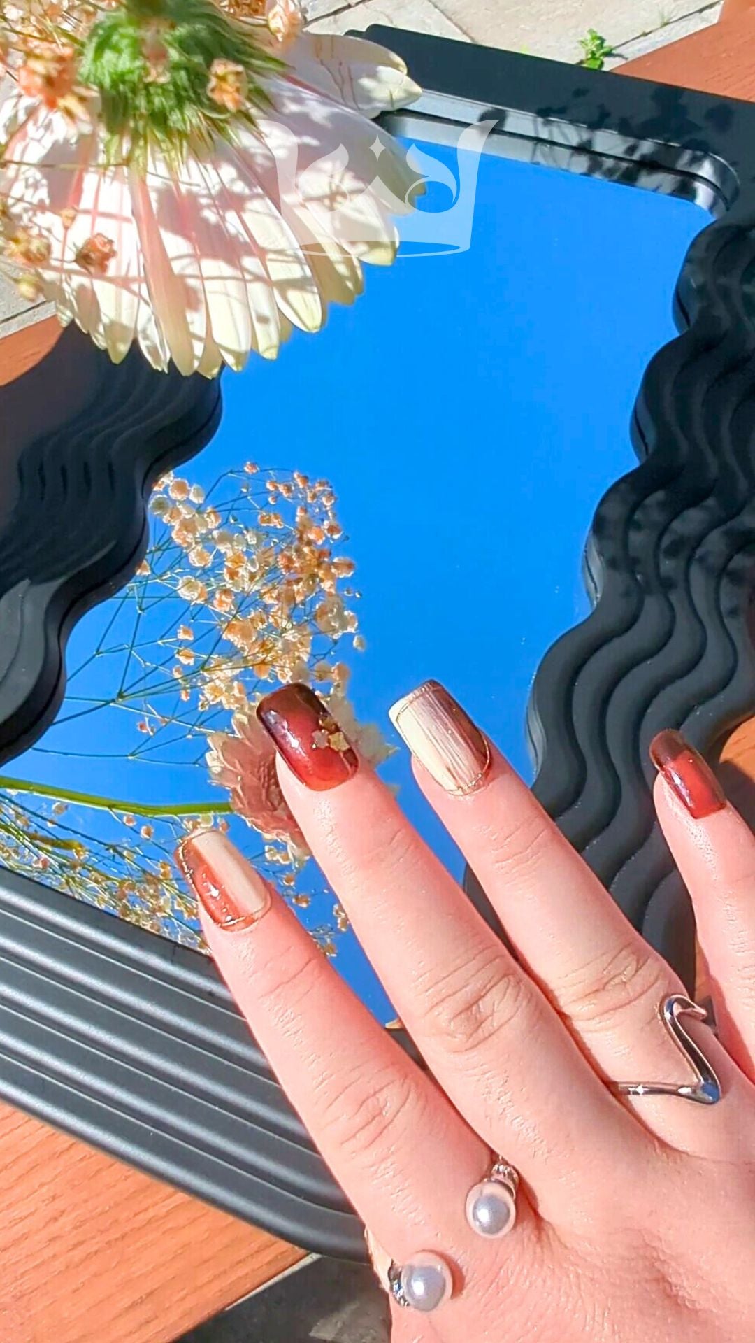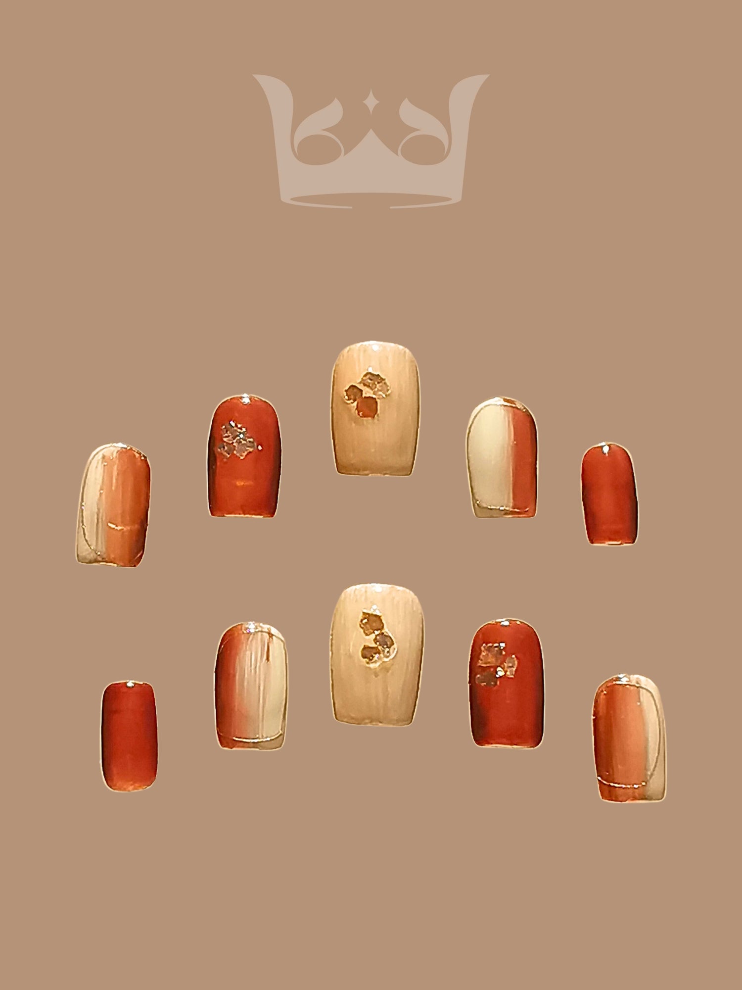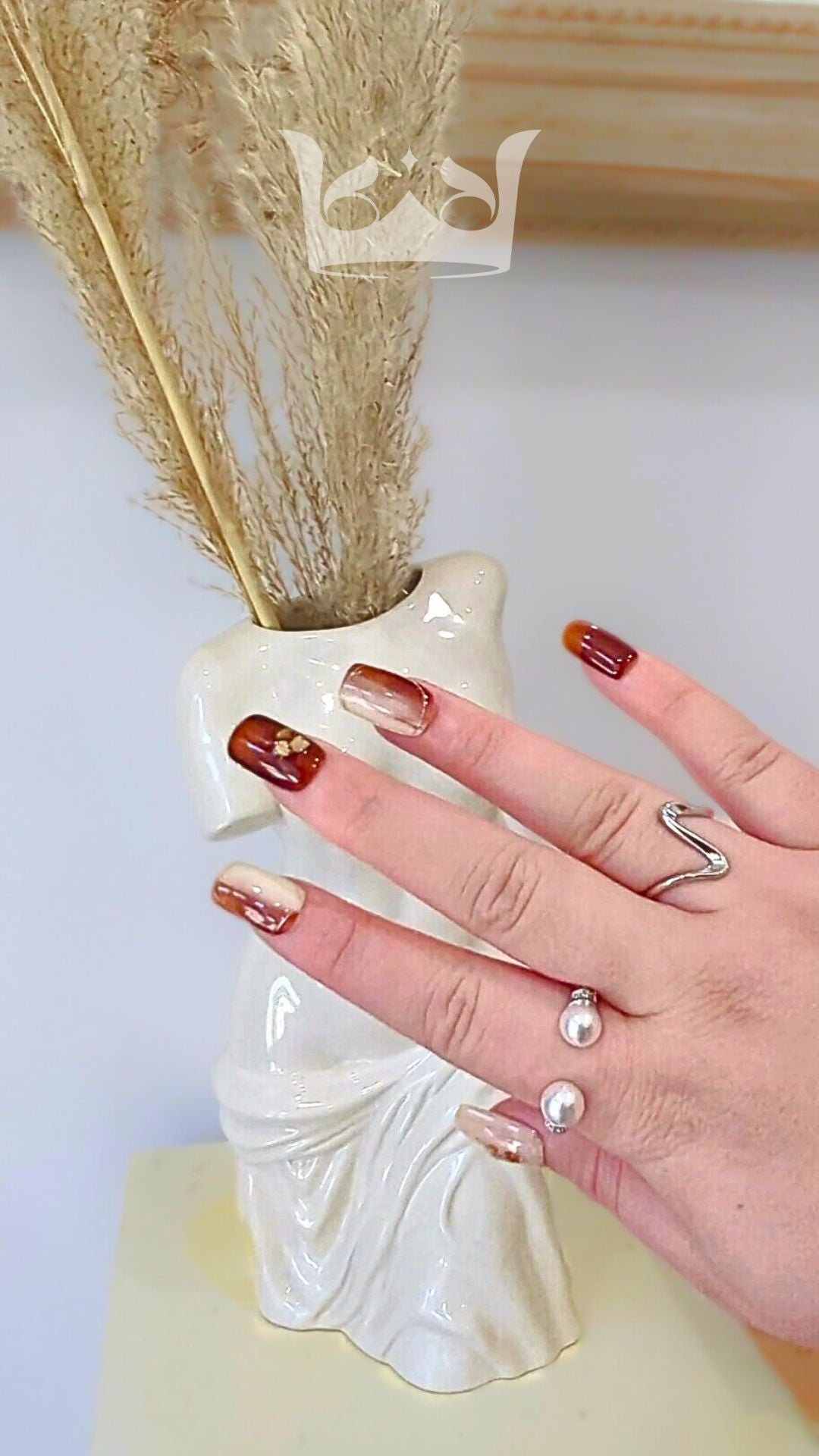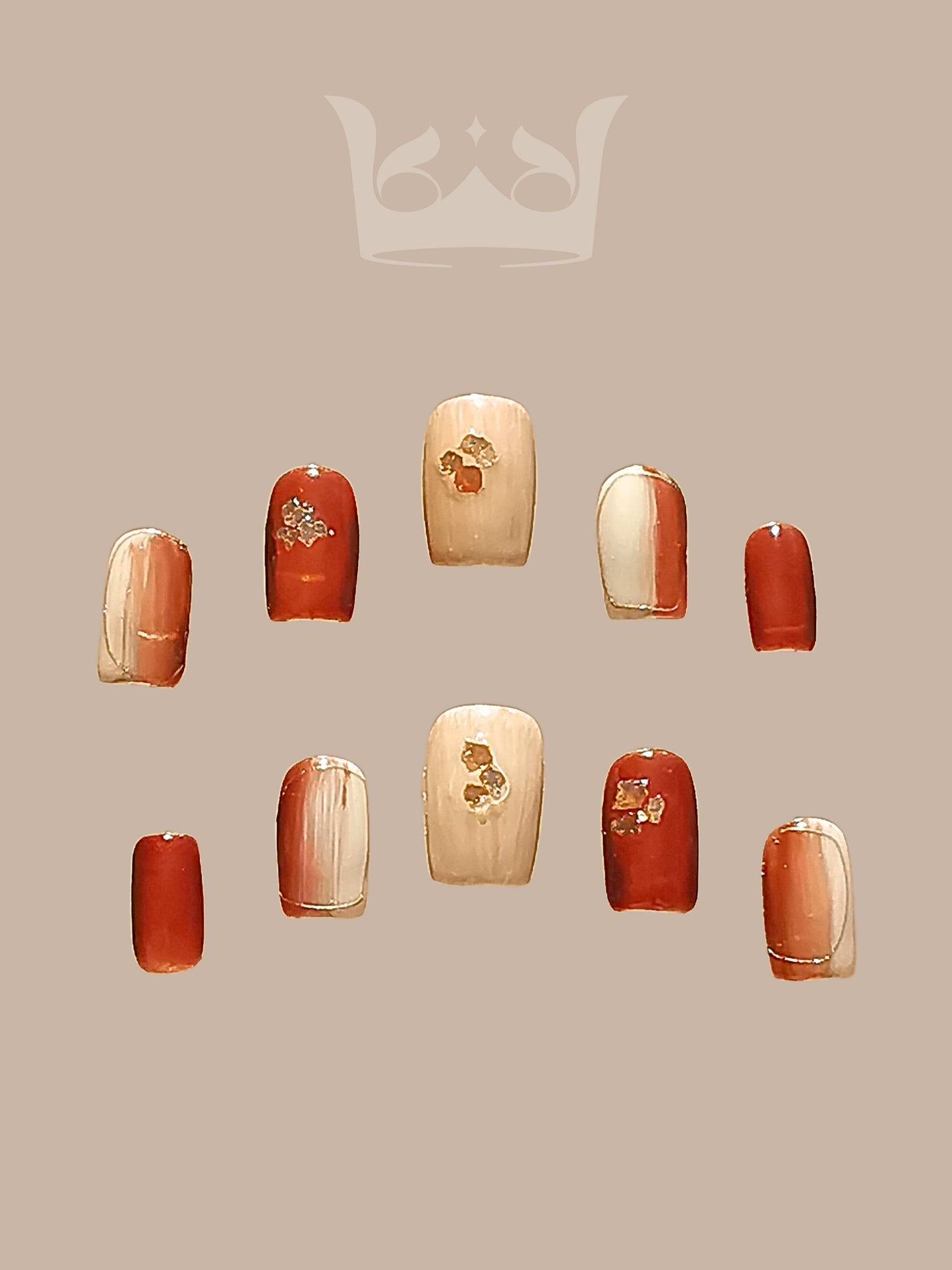 Sombra cálida: uñas cuadradas medianas a presión en degradado marrón