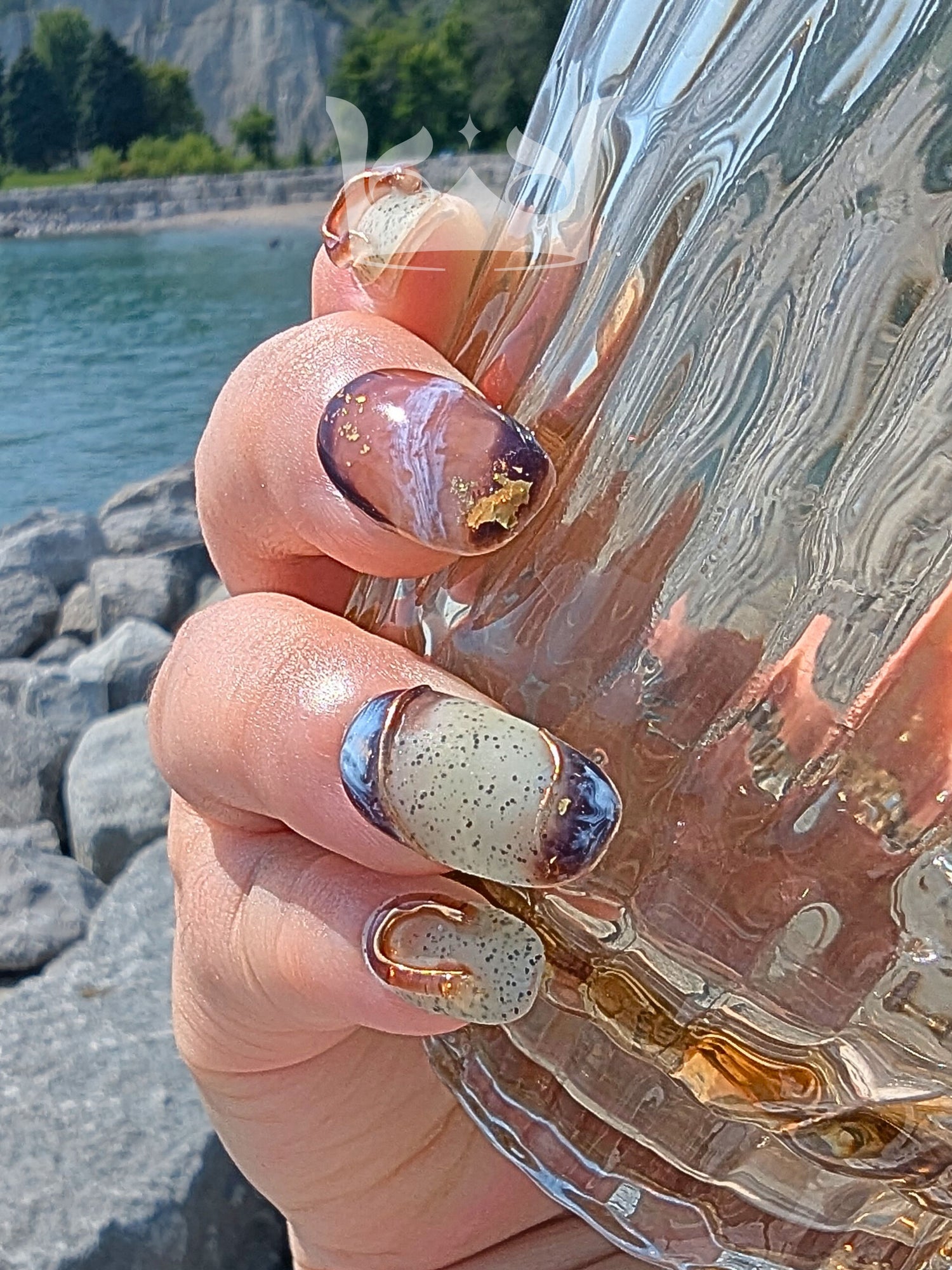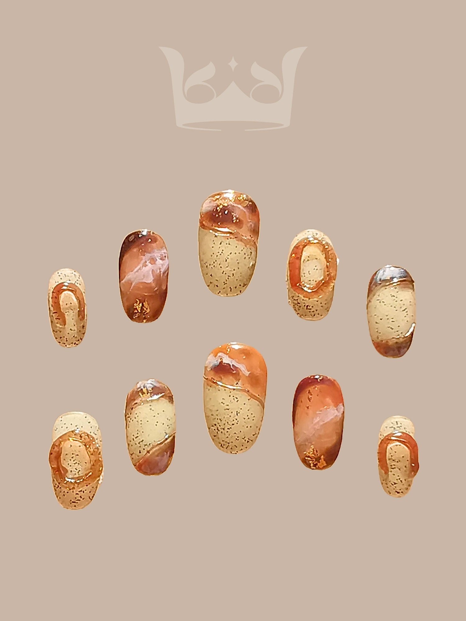 Marbre ambré : Presse ovale de longueur moyenne en marbre abstrait sur les ongles