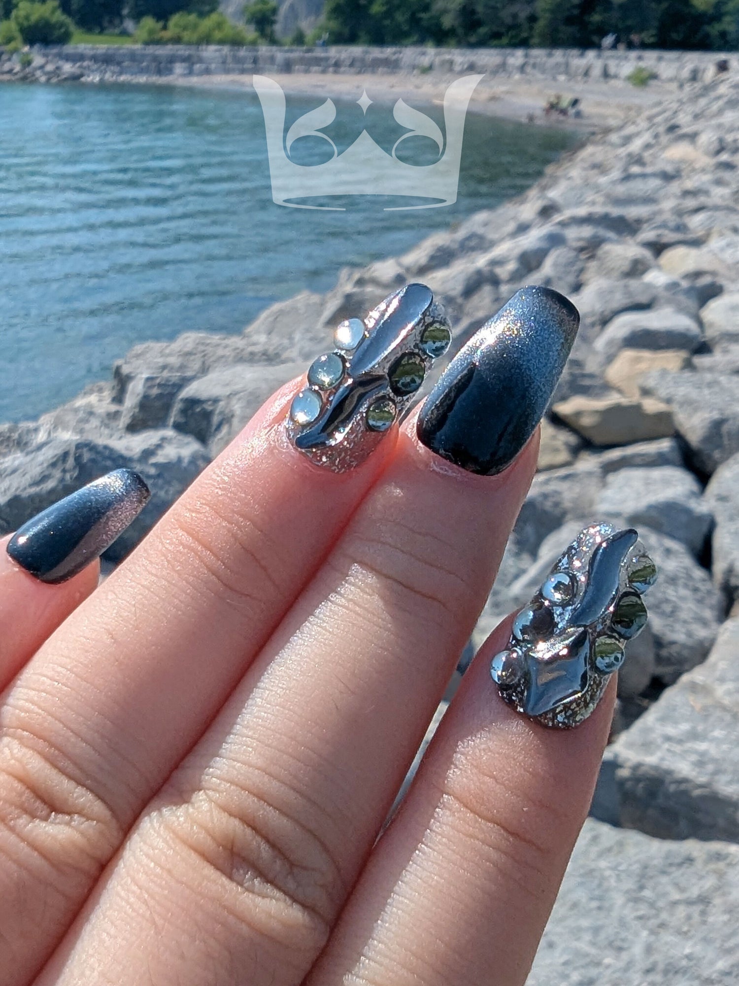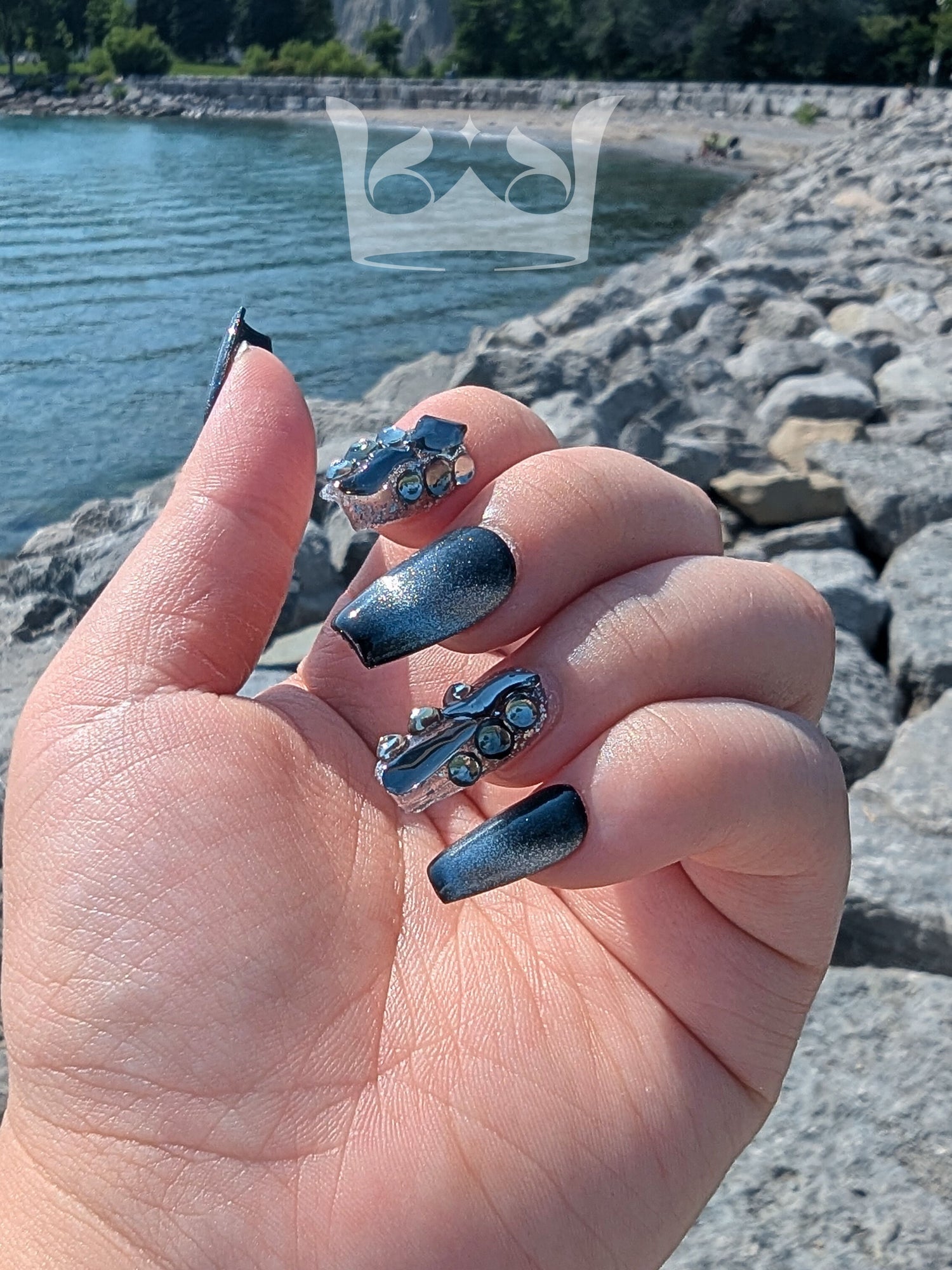 - A hot date (because nothing says "I'm mysterious and alluring" like nails that look like the void)