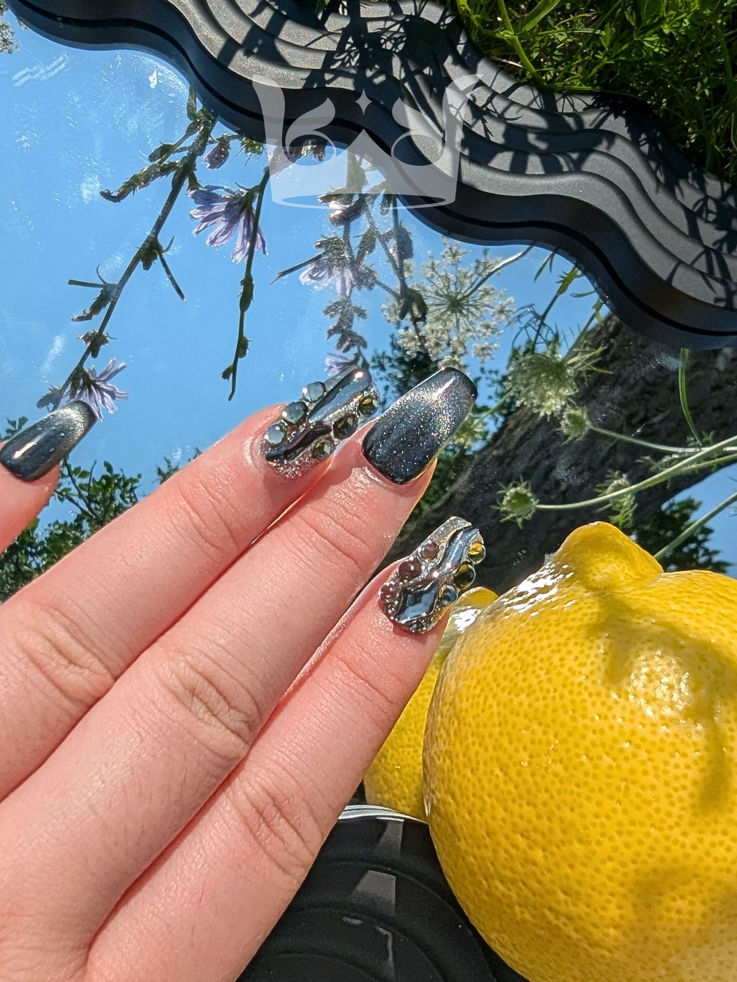 Don't just reach for the stars β wear them on your fingertips. Get your Abyssal Void: Black Chrome Medium Press On Nails today and let your hands do the talking (and the dazzling, and the slaying...).