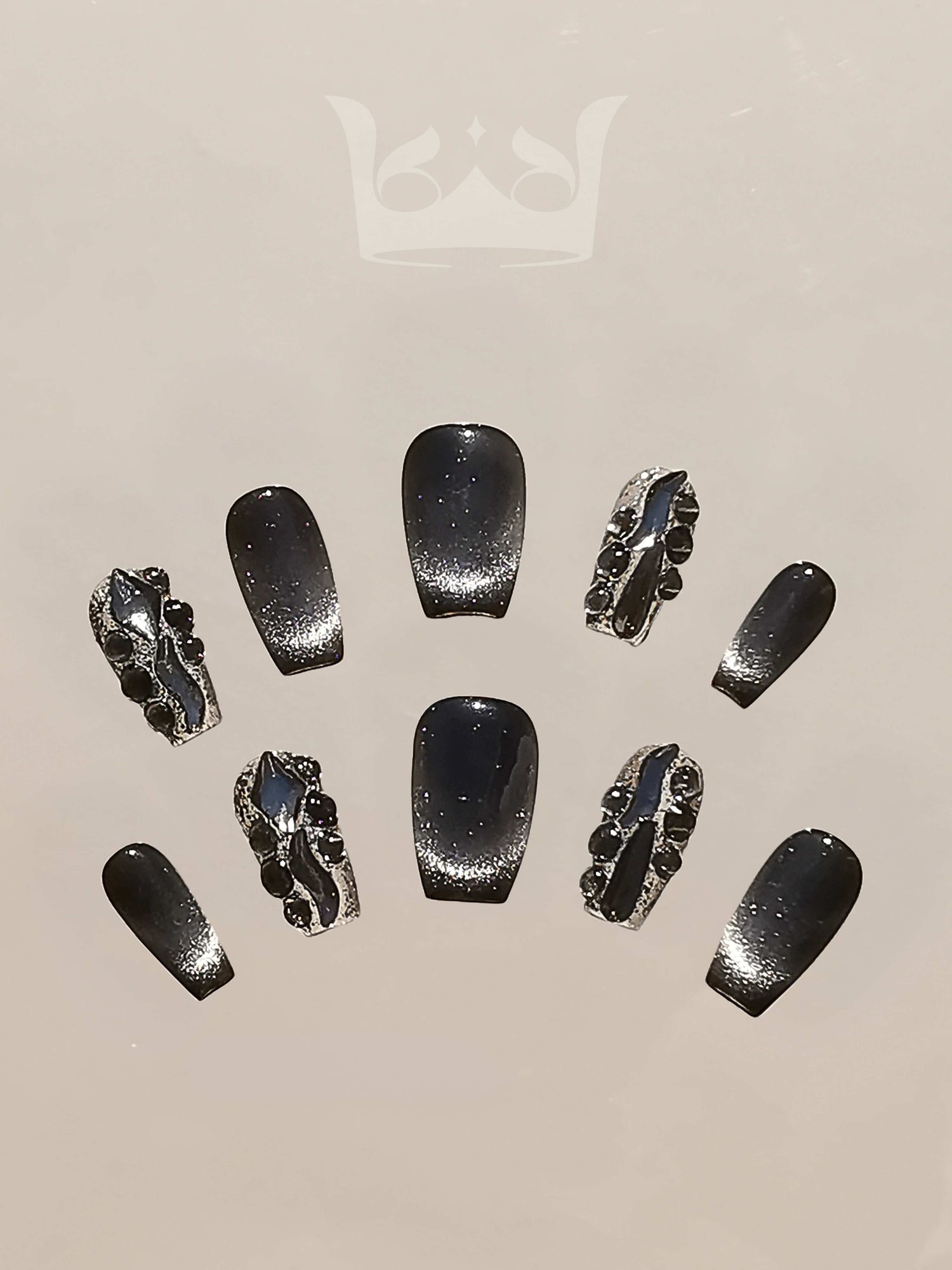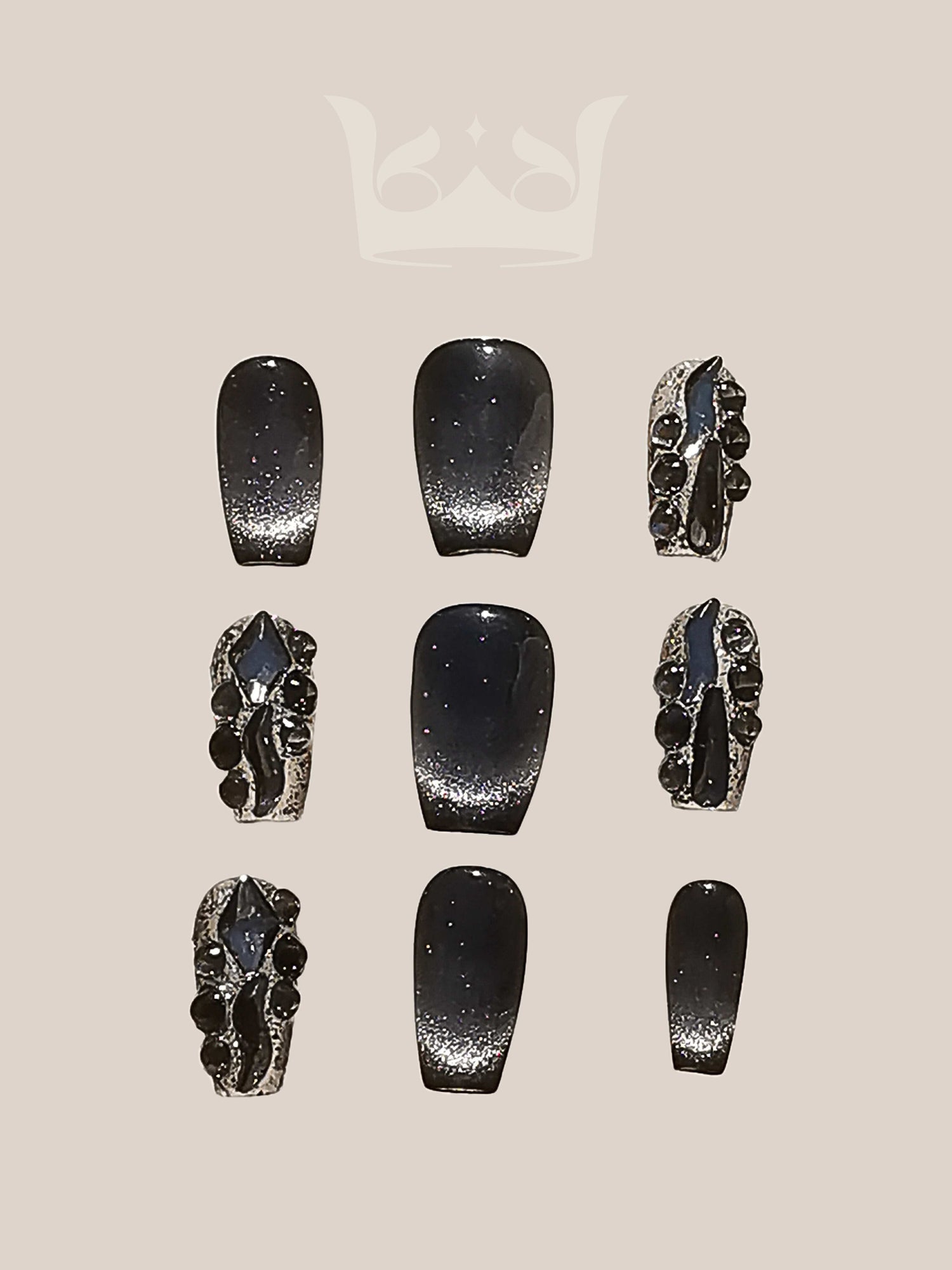 So whether you're climbing the corporate ladder or just want to feel like a noir film heroine while doing the dishes, Abyssal Void nails have got you covered. With these nails squoval masterpieces, you'll be serving looks darker than your coffee and sharper than your wit.