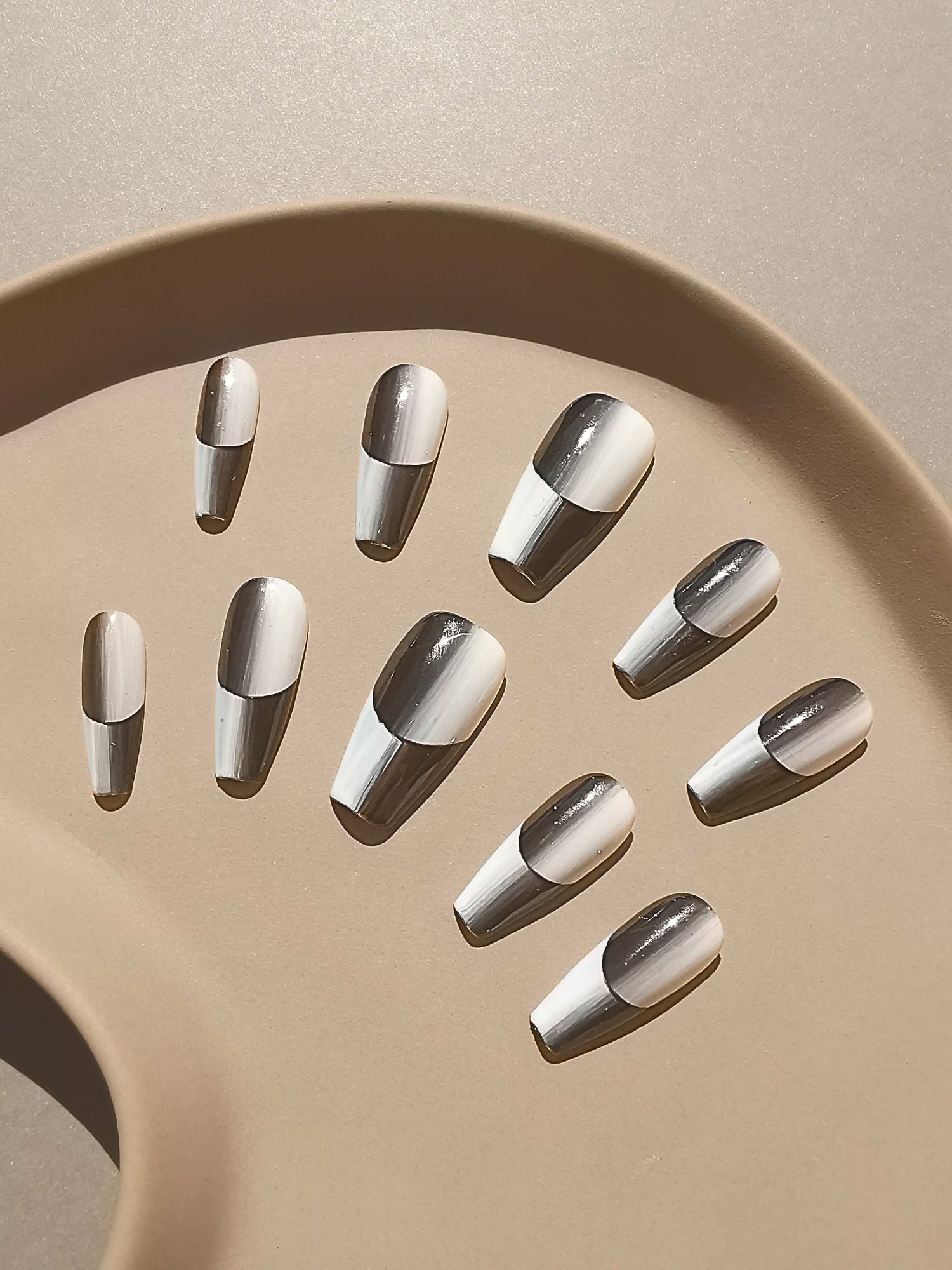 Looking for coffin shaped nails designs that mean business (casual)? Say hello to Aurora's Shadow, the press-on nails that'll have your colleagues asking, "Did you get a raise, or just a manicure?"