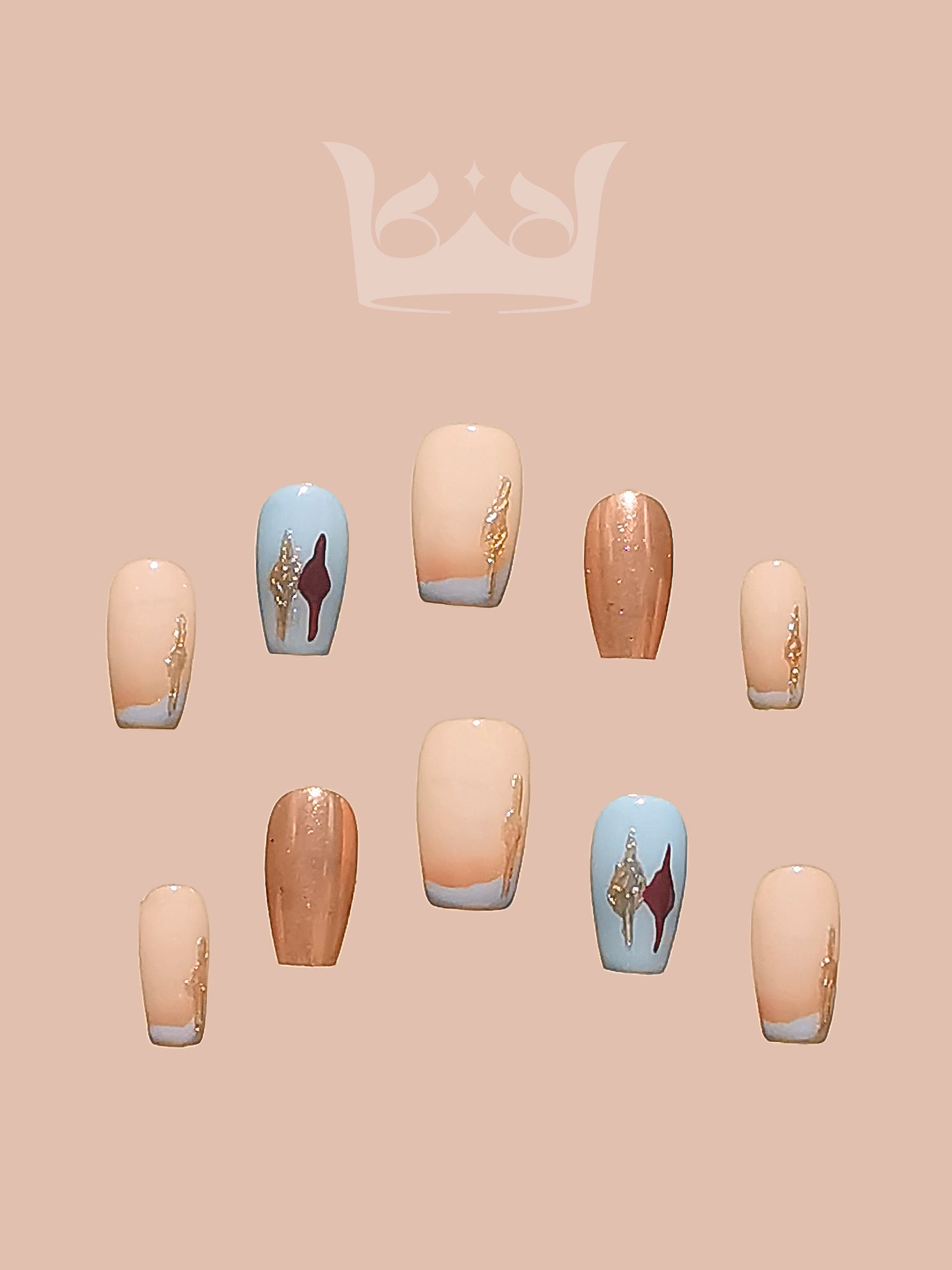 Whether you're a coffin nails long length enthusiast or just dipping your toes (or fingers) into the world of coffin style nails, Bronzed Euphoria is your express ticket to glamour town. No passport required, just a sense of adventure and a love for looking absolutely fabulous!