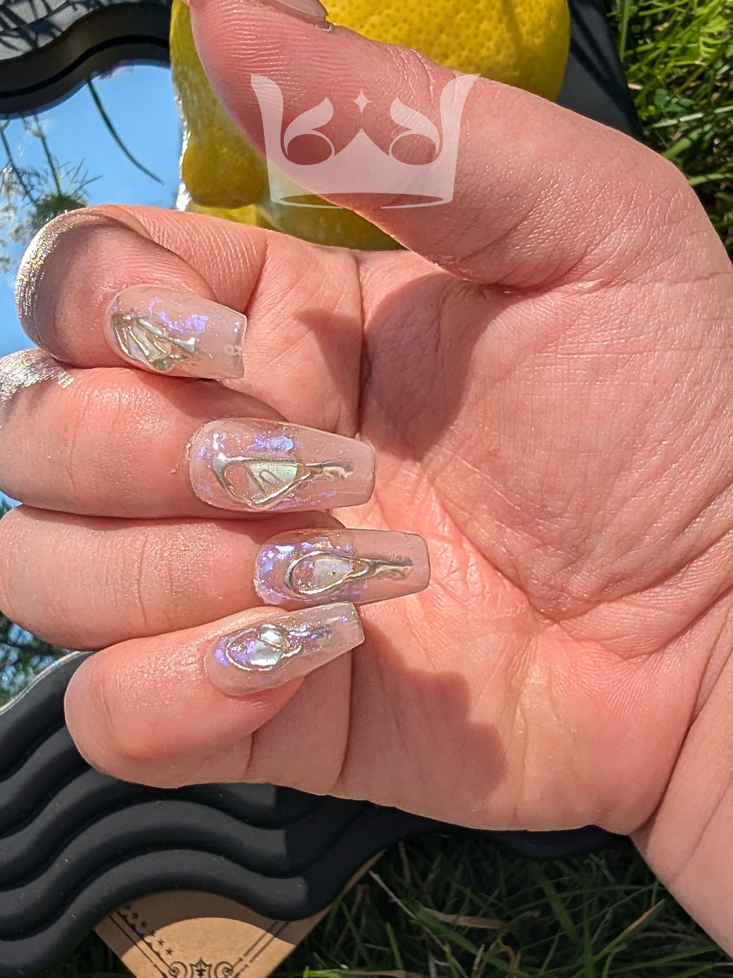 But wait, there's more! These nails feature dazzling aurora effects that'll have you shimmering brighter than a mermaid's tail in the sunlight. Talk about making a splash!